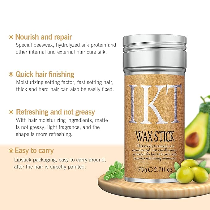 Fórmula 3-en-1 Natural: Con ingredientes premium como Cera de Abejas, Aceite de Aguacate, Manteca de Karité y Vitamina E, esta cera cuida y fortalece su cabello mientras lo estiliza, aportando suavidad, brillo y reparación.