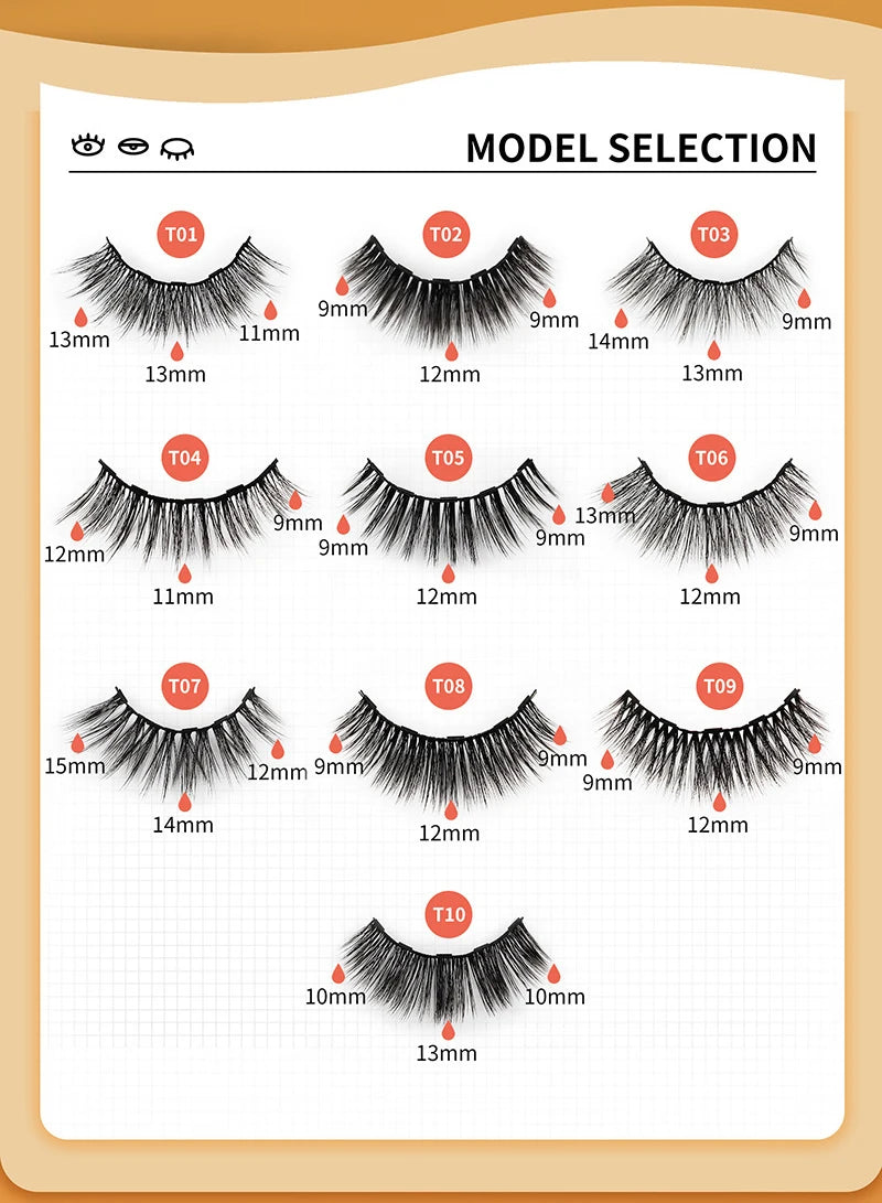 Tamaño del producto: 10,90 x 4,70 x 1,00 cm (Compacto y elegante). Peso del producto: 15,80G (Ultraligero). Adaptarse a la multitud: Uso universal (Perfecto para todas/os). Cantidad: 1 par de pestañas + 1 botella de pegamento/adhesivo.