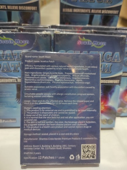 Material: Tela no tejida (Alta transpirabilidad). Contenido: 12 Parches por Pack (Suministro de tratamiento). Ingredientes: Herbales (Changshu, Chuanxiong, Yuanhui, Artemisia Argyi y Guizhi).